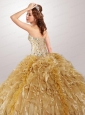 Home >  Quinceanera Dresses >  Custom Made Quinceanera Dresses > Remarkable Beading and Ruffles Quinceanera Dress in Gold