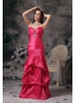 Remarkable Coral Red Column Sweetheart Prom Dress Taffeta Beading Floor-length