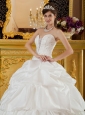 Remarkable Elegant Quinceanera Dress Strapless Taffeta Beading White Ball Gown