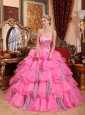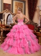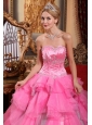 Remarkable Rose Pink Quinceanera Dress Sweetheart Organza Beading Ball Gown