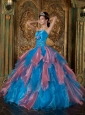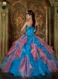 Home >  Quinceanera Dresses >  Unique Quinceanera Dresses > Remarkable Sky Blue and Watermelon Quinceanera Dress Strapless Organza Beading and Ruffles Ball Gown