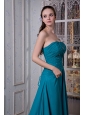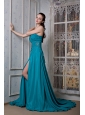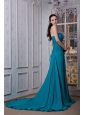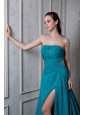 Home >  Evening Dresses > Remarkable Teal A-line Strapless Evening Dress Chiffon and Elastic Woven Satin Beading Court Train