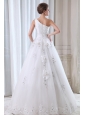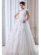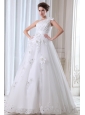 Roamntic A-line One Shoulder Wedding Dress Beading and Appliques Floor-length Tulle