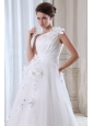 Home >  Wedding Dresses >  Affordable Wedding Dresses > Roamntic A-line One Shoulder Wedding Dress Beading and Appliques Floor-length Tulle