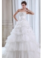 Home >  Wedding Dresses >  Popular Wedding Dresses > Roamntic A-line Strapless Beading and Appliques Wedding Dress Court Train Organza