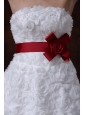 This gorgeous sweetheart white chapel wedding dress is highlighted by the rose pattern adorned all over the skirt, which makes the dress full of" fragrance". The ruched bodice adorned by the eye-catching red bowknot in the middle that adds more glitz to the luxurious dress. If you are looking for your dream wedding dress with royal atmosphere, then just picks up this dress.