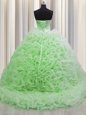 Rolling Flowers Brush Train Sweetheart Lace Up Beading and Pick Ups Sweet 16 Quinceanera Dress Sleeveless