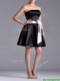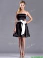 Romantic A Line Strapless White Be-ribboned Short Mother of the Bride Dress in Black