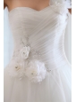 Romantic A-line One Shoulder Low Cost Wedding Dress Tulle Beading and Hand Made Flowers Floor-length