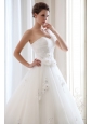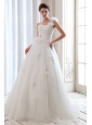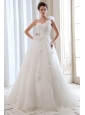Home >  Wedding Dresses >  Low Cost Wedding Dresses > Romantic A-line One Shoulder Low Cost Wedding Dress Tulle Beading and Hand Made Flowers Floor-length