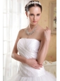 Romantic A-Line / Princess Strapless Floor-length Taffeta and Organza Ruch Wedding Dress