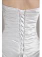 The white strapless dress features a sweetheart neckline and a ruched bodice all the way to the hip part. The style of the dress is simple yet elegant. The floor length A-line skirt flows beautifully with a loose fit that will make it easy to dance the night away. A lace up corset style closure in the back secures the dress in place.