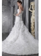 Your wedding gown should reflect your style and if you're looking for something different and unique, this stunning dress is the one for you.It features strapless bodice with a sweetheart neckline, the ruched bodice and rossette flower skirt make the dress perfectly.The back of the bodice has a corset style zipper up closure.