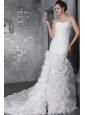 Romantic A-Line / Princess Sweetheart Chapel Train Organza Ruffles Wedding Dress