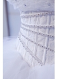 It's one of those great fabrics that makes a girl feel extra feminine and special when worn and adds an element of beauty to anything it embellishes. This gown features a strapless corset bodice wrapped by ruffles in organza and shinning paillettes. The waist is swirled with beaded strings, which shows off exactly the slim waistline. The floor length skirt is full of tulle ruffles all over that makes it romantic and luxurious. The perfect design is completed with lace up closure.
