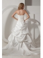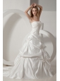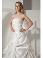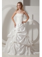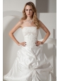 Romantic A-line Strapless Wedding Dress Appliques and Pick-ups Chapel Train Taffeta