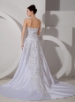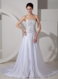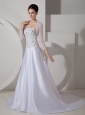 Home >  Wedding Dresses >  Elegant Wedding Dresses > Romantic A-line Strapless Wedding Dress Court Train Satin Embroidery