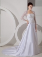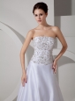 Romantic A-line Strapless Wedding Dress Court Train Satin Embroidery