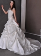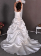 Romantic A-line Straps Beach Wedding Dress Chapel Train Taffeta Appliques and Pick-ups