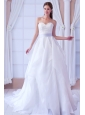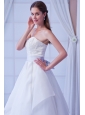 Romantic A-line Sweetheart Court Train Organza Appliques Wedding Dress