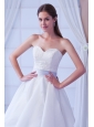 Home >  Wedding Dresses >  Elegant Wedding Dresses > Romantic A-line Sweetheart Court Train Organza Appliques Wedding Dress