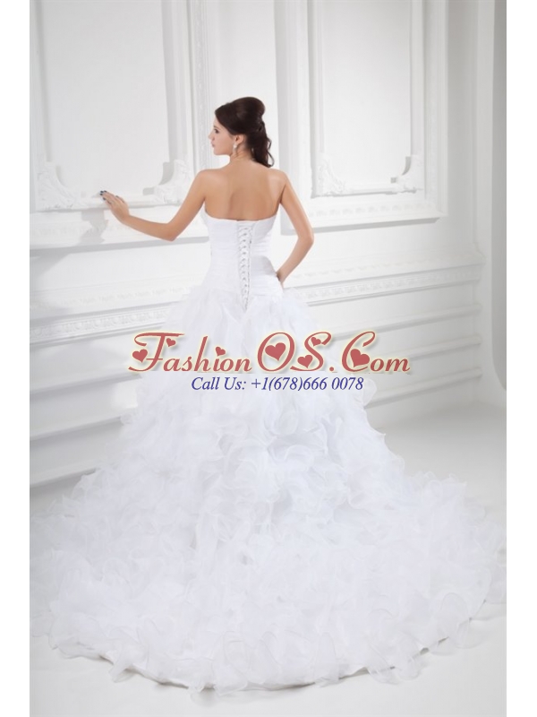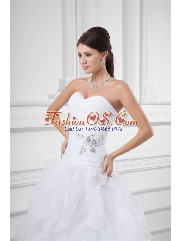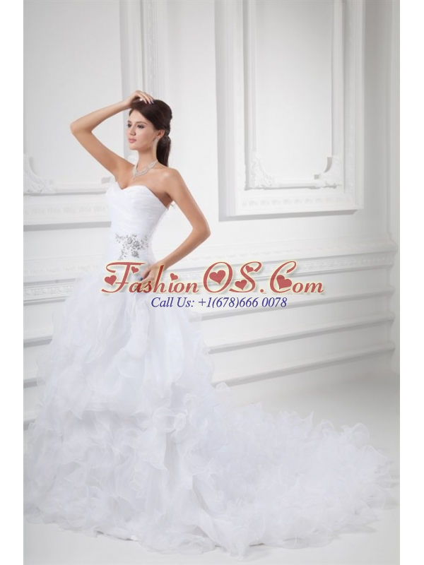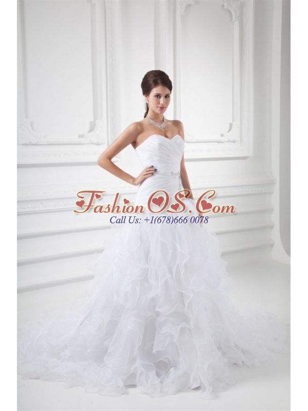 Romantic A-line Sweetheart Court Train Wedding Dress with Beading and Ruffles