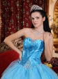 Home >  Quinceanera Dresses >  Perfect Quinceanera Dresses > Romantic Aqua Blue Quinceanera Dress Sweetheart Tulle Beading Ball Gown