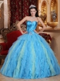 Romantic Aqua Blue Quinceanera Dress Sweetheart Tulle Beading Ball Gown