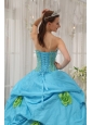 Home >  Quinceanera Dresses >  Pretty Quinceanera Dresses > Romantic Baby Blue Quinceanera Dress Strapless Taffeta Beading and Hand Flowers Ball Gown