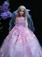 Home >  Accessories >  Quinceanera Doll Dresses > Romantic Baby Pink Strapless Lace Fashion Wedding Dress For Quinceanera Doll