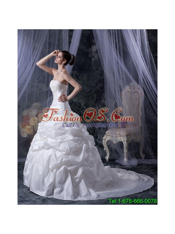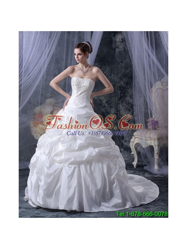 Romantic Ball Gown Strapless Wedding Dresses with Appliques