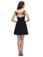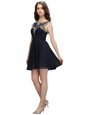 Romantic Bateau Sleeveless Dress for Prom Mini Length Beading Black Chiffon