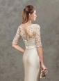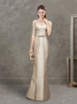 Romantic Beaded and Bowknot Scoop Modest Prom Dress with Half Sleeves