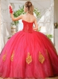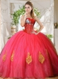 Romantic Beaded and Gold Applique Really Puffy Quinceanera Dress in Red