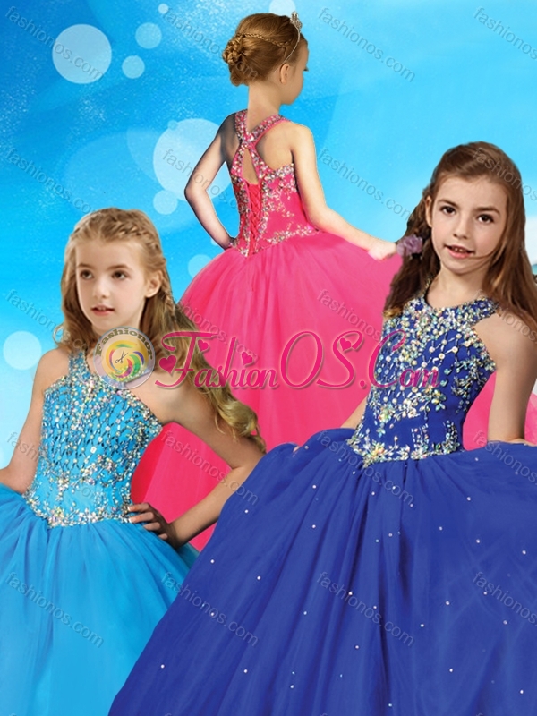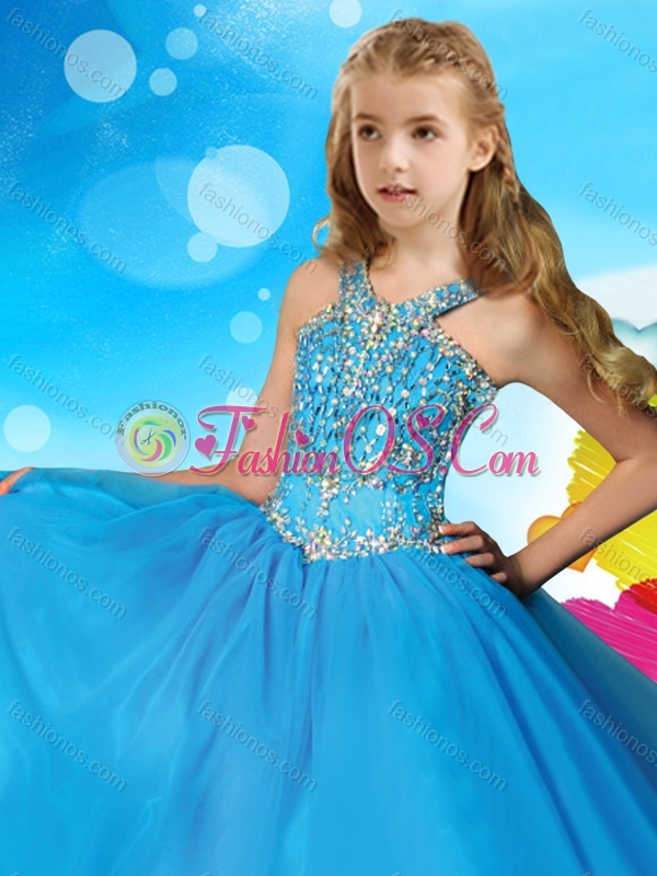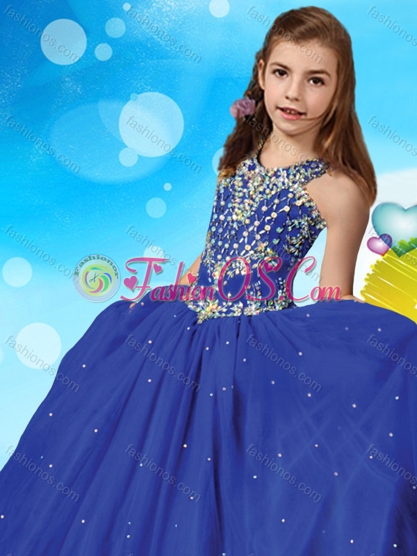 Romantic Beaded Scoop Little Girl Pageant Dress with Puffy Skirt