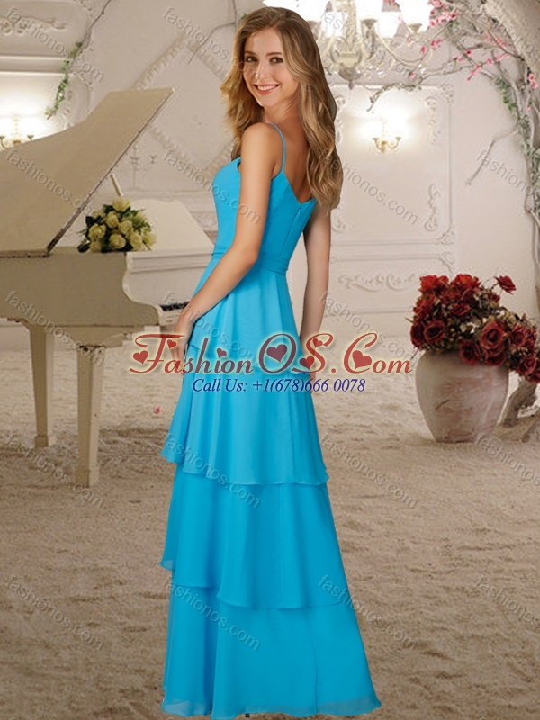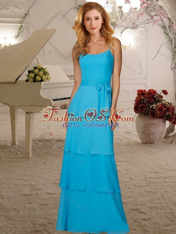 Romantic Belted and Ruffled Layers Cheap Dama Dress with Spaghetti Straps