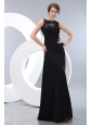 Romantic Black Column Bateau Beading Mother Of The Bride Dress Floor-length Taffeta