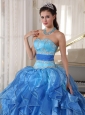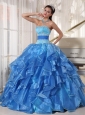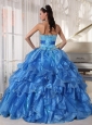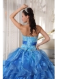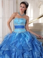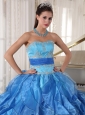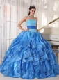 Romantic Blue Quinceanera Dress Strapless Organza Appliques Ball Gown