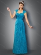 Romantic Cap Sleeves Teal Mother of The Groom Dress in Lace