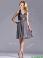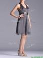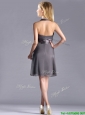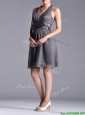Romantic Chiffon Halter Top Knee Length Mother of the Bride Dress in Grey