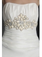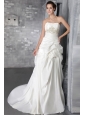 Home >  Wedding Dresses >  Affordable Wedding Dresses > Romantic Column/Sheath Strapless Court Train Taffeta Beading Wedding Dress