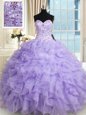 Romantic Coral Red Organza Lace Up Sweetheart Sleeveless With Train Quinceanera Dresses Brush Train Beading and Ruffles