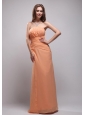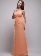 Home >  Bridesmaid Dresses >  Cheap Bridesmaid Dresses > Romantic Empire Strapless Floor-length Chiffon Ruch Orange Bridesmaid Dress