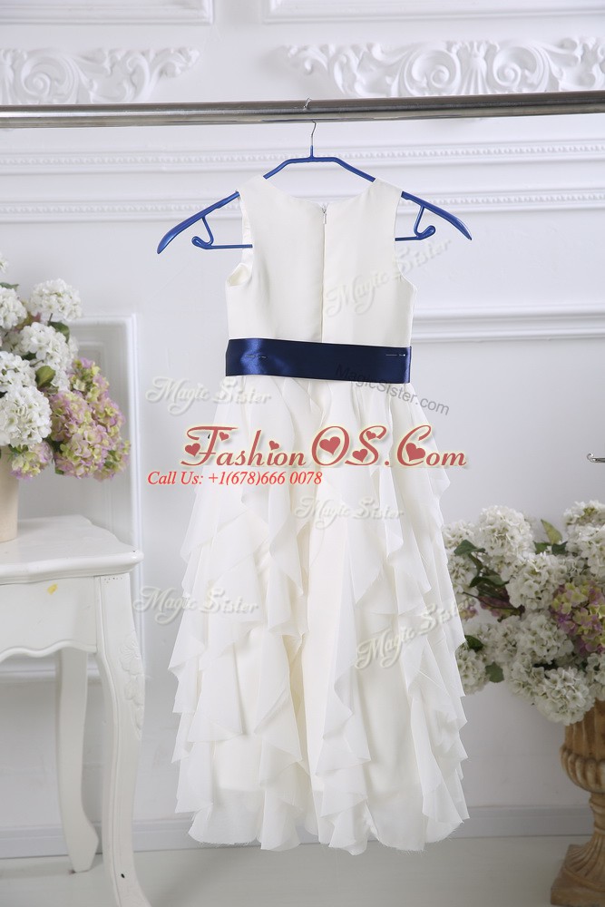 Romantic Floor Length White Flower Girl Dresses for Less Scoop Sleeveless Zipper