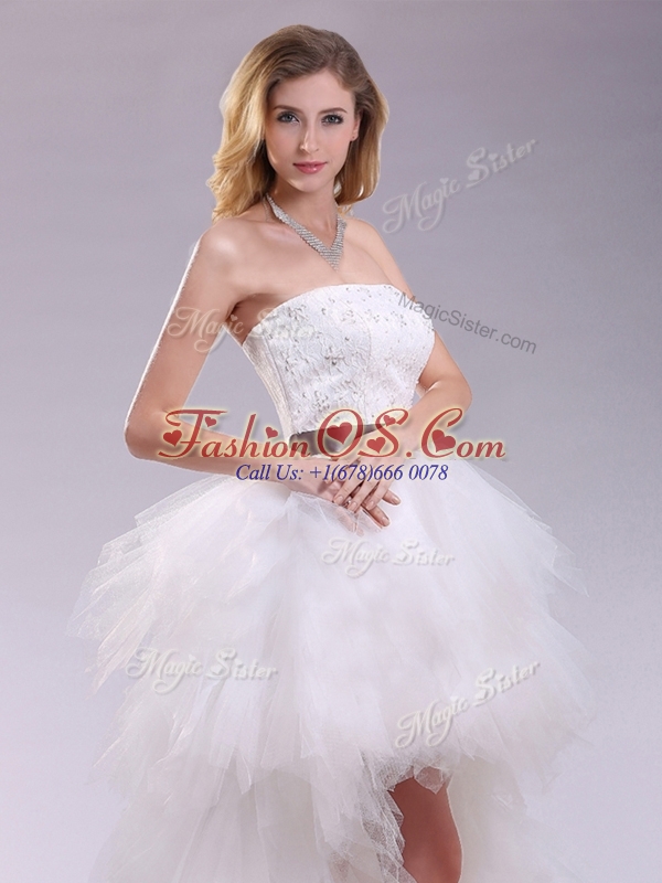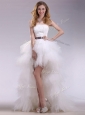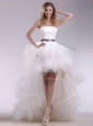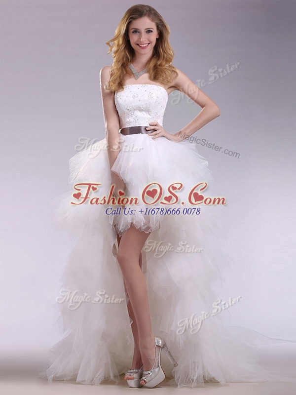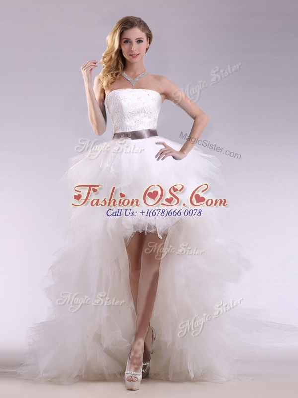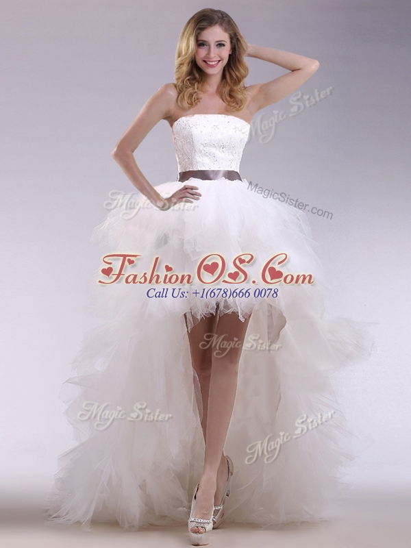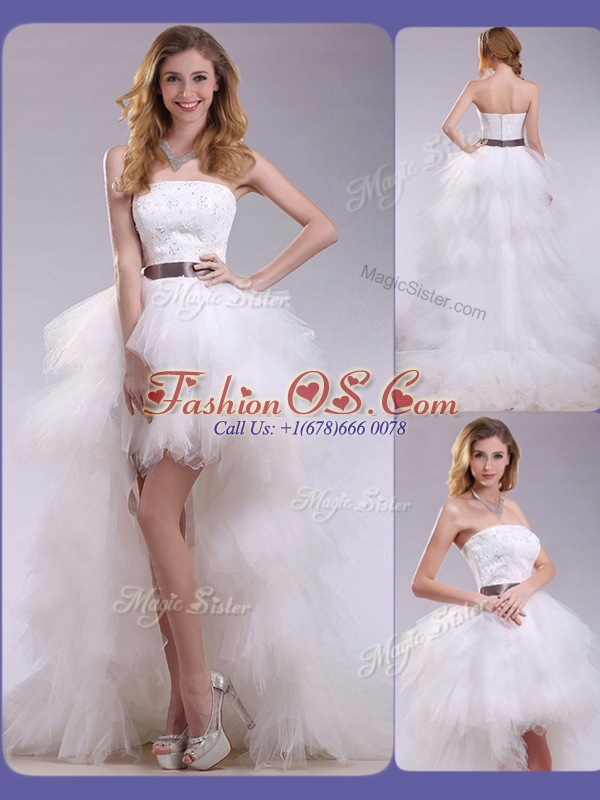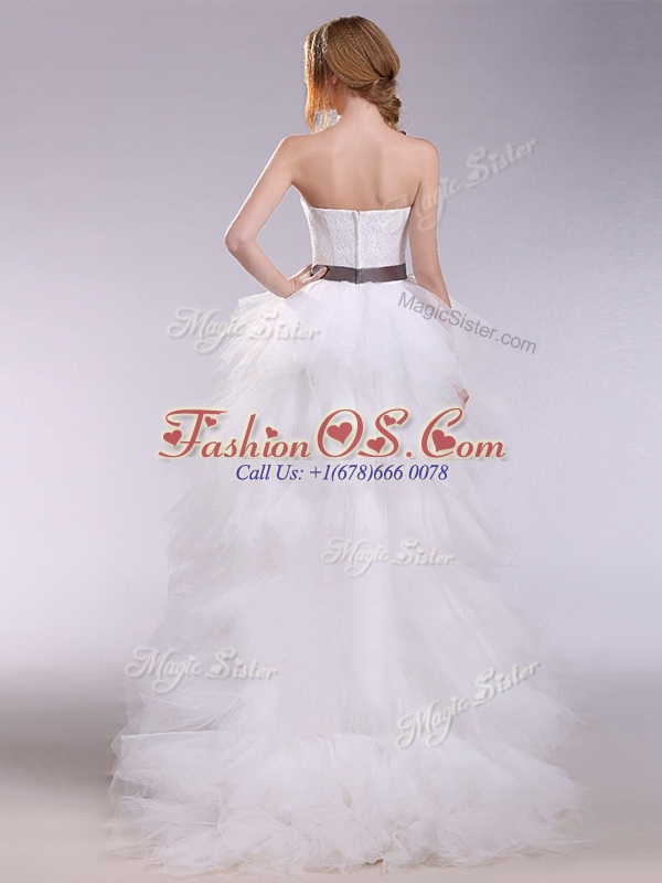Romantic High Low Ruffles and Belt Wedding Dresses with Zipper Up