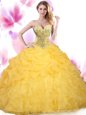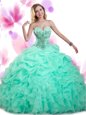 Romantic High-neck Sleeveless Tulle Quinceanera Dresses Beading and Ruffles Lace Up