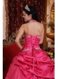 Romantic Hot Pink Quinceanera Dress Halter Taffeta Appliques Ball Gown