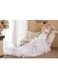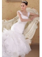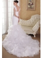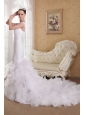Romantic Mermaid Straps Court Train Satin and Organza Ruffles Wedding Dress