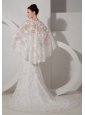 Wedding gowns with lots of lace details are definitely romantic! It features a sweetheart neckline with a sparkling cloak outside and gorgeous lace panel across the entire body. The midsection of the dress features a lace overlay and a beautiful fitted design that shows off your curves beautifully. The mermaid-style skirt flares slightly at the hips, creating a beautiful silhouette before extending into a gorgeous lacy train in the back. A hidden zip closure makes for easy off and on. It is really beautiful and dreamful!