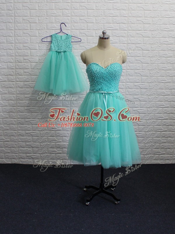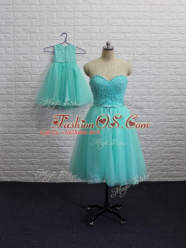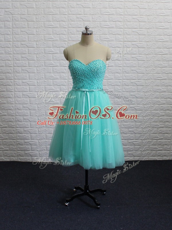 Romantic Mini Length A-line Sleeveless Aqua Blue Teens Party Dress Lace Up